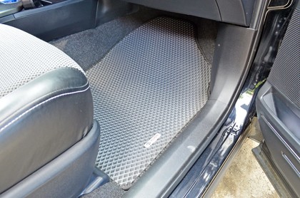 Автоковрики ЕВА не впитывают, а удерживают грязь в ячейках. Вода не катается по полу, как в резиновых половичках, однако, её все равно видно. ЕВА удобны тем, что их легко достать не пролив и вытряхнуть. Они дешевле.
